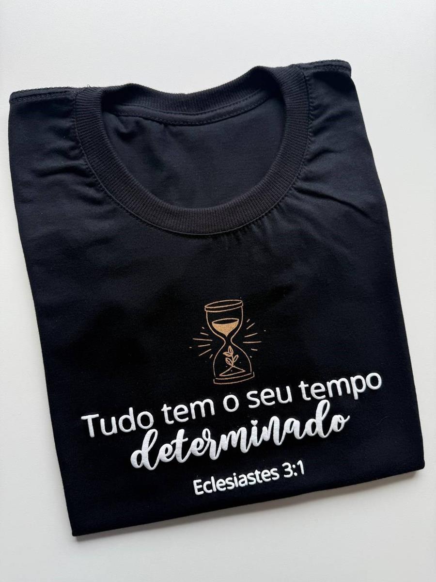 Camiseta tudo tem seu tempo determinado, tecido de algodão Premium, reforço ombro a ombro, Gola ribana.