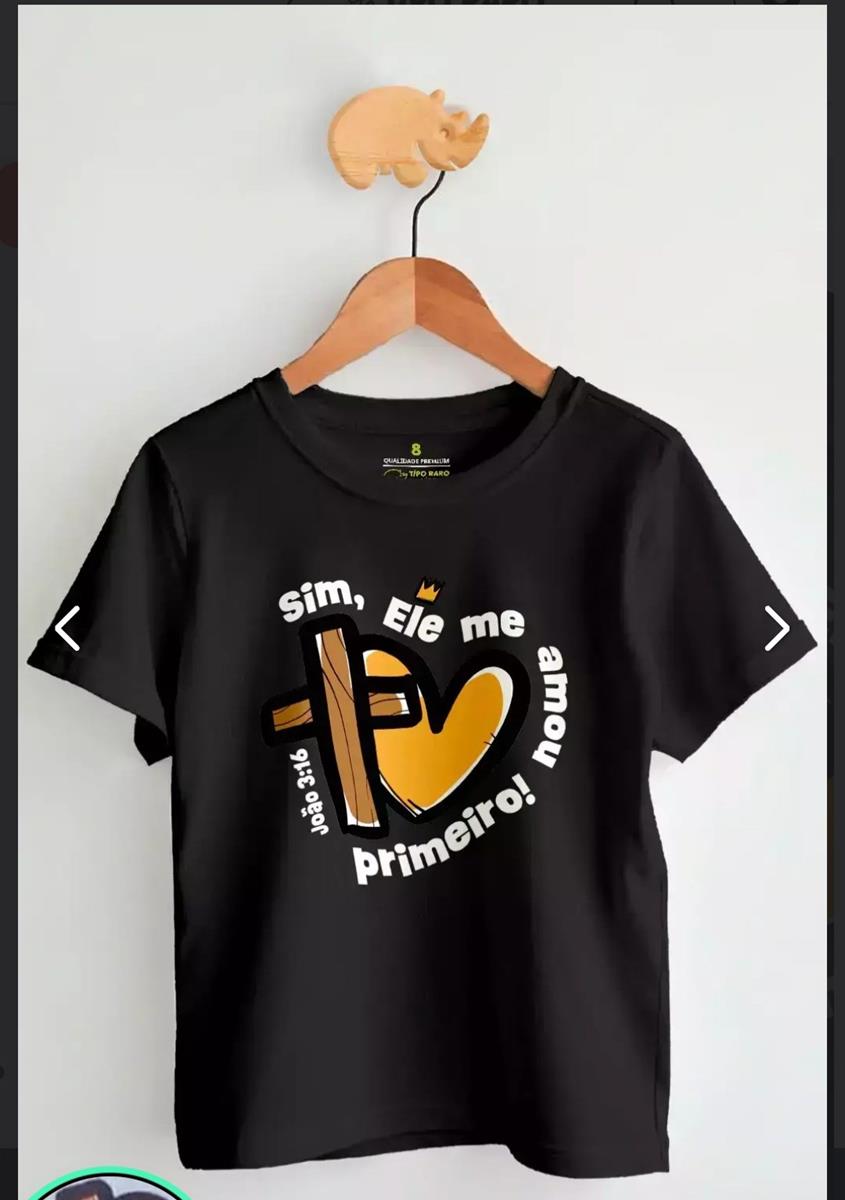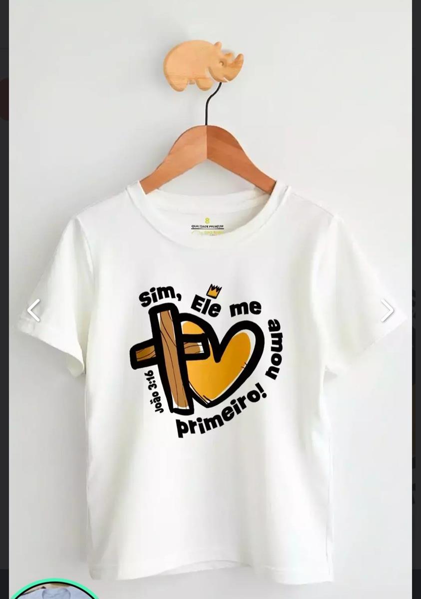 Camiseta infantil Ele me amou primeiro, tecido de algodão Premium reforço ombro a ombro, Gola ribena.