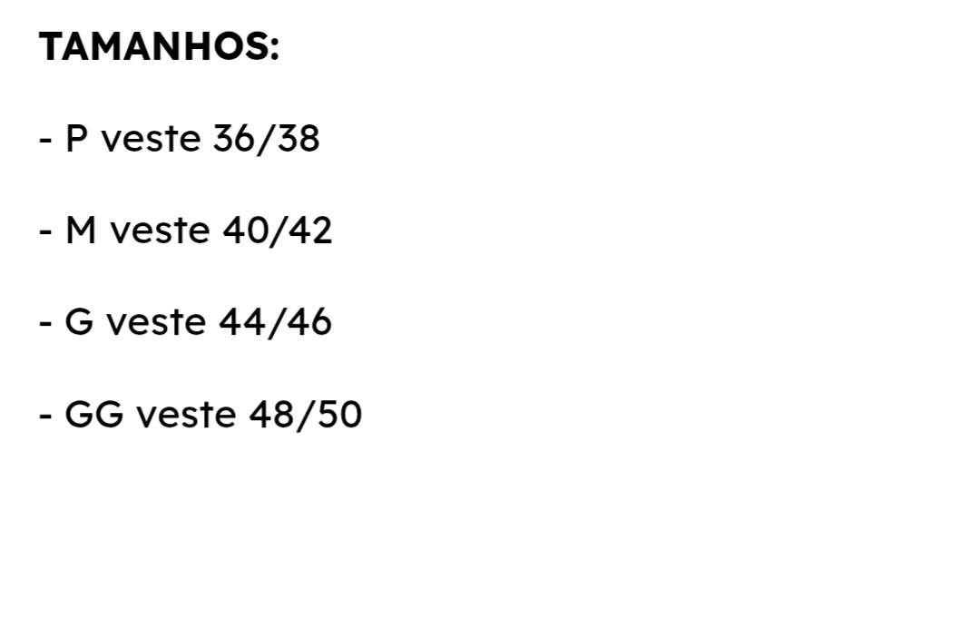 Tabelas de Medidas